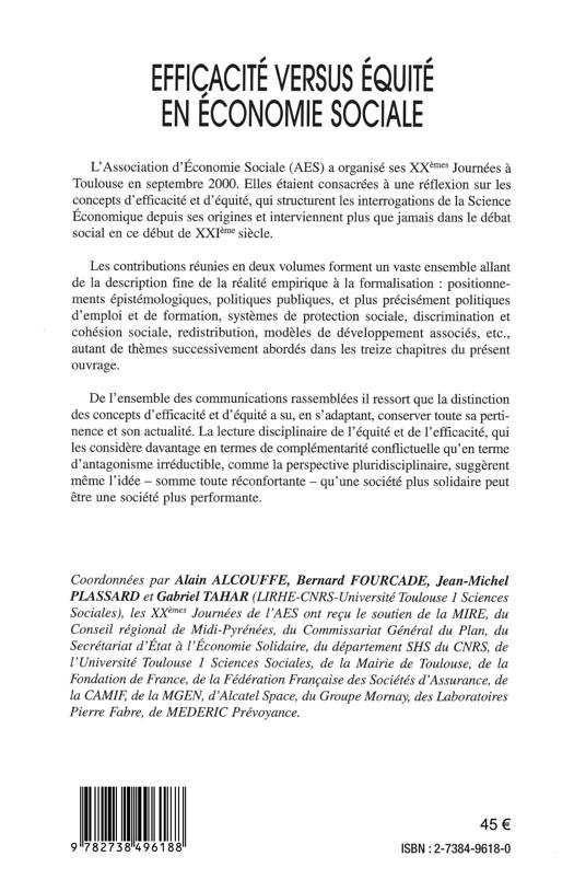 Livre broché | Français | Efficacité versus équité en économie sociale | n° 2