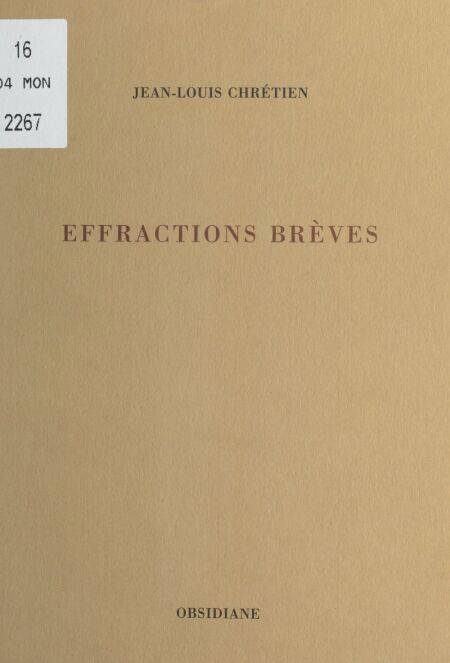 « Ton pas délesté de tout rêve aiguise la flèche des oiseaux, qui vibre vers le sud offert nu à leurs cris ; des enfants sur un terrain vague lavent leurs yeux dans le feu ; les mots sèchent dans les greniers ; au ciel blanc tu sais gré de ne te voir qu’à peine, entre les bras fuyants d’octobre, aller le long de l’eau déconcertée. » Paru en 1995 dans la collection "Les solitudes", Effractions brèves est un recueil de 36 poèmes en prose de l'écrivain, philosophe et poète Jean-Louis Chrétien (1952-2019).