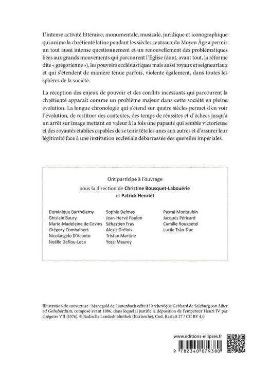 La réception des enjeux de pouvoir et des conflits incessants qui parcourent la chrétienté apparaît comme un problème majeur dans cette société en pleine évolution. La longue chronologie qui s’étend sur quatre siècles permet d’en voir l’évolution, de restituer des contextes, des temps de réussites et d’échecs jusqu’à un arrêt sur image mettant en valeur à la fois une papauté qui semble victorieuse et des royautés établies capables de se tenir tête les uns aux autres et d’assurer leur légitimité face à une institution ecclésiale débarrassée des querelles impériales.