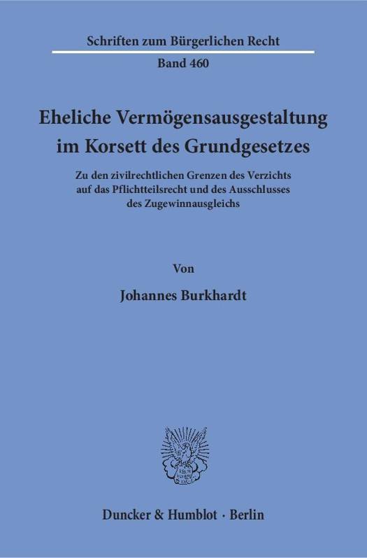 Jahrzehntelang blieben ehevertragliche Vereinbarungen von einer durchgreifenden Inhaltskontrolle verschont. Erst die Rechtsprechung des Bundesverfassungsgerichts änderte dies. In der Folge entwickelte der Bundesgerichtshof - freilich auf Grundlage von insbesondere zivilrechtlichen Überlegungen - Leitplanken für die Inhaltskontrolle von Eheverträgen, in deren Mittelpunkt die sogenannte Kernbereichslehre steht. Von dieser Inhaltskontrolle blieben das eheliche Güterrecht und der Pflichtteilsverzicht weitgehend unberührt. Jedoch bilden das Güter- und Erbrecht der Eheleute oftmals die wirtschaftlich bedeutendsten Rechte bei Beendigung der Ehe durch Scheidung bzw. Tod des anderen Ehegatten. Daher verwundert es nicht, dass diese beiden Rechtsinstitute in jüngster Vergangenheit zunehmend in den Fokus des wissenschaftlichen Interesses bei der Inhaltskontrolle der Vermögensausgestaltung der Eheleute gerieten. Die Arbeit zeigt auf der Basis der mittelbaren Drittwirkung der Grundrechte - dem Ausgangspunkt der durch das Bundesverfassungsgericht angestoßenen Inhaltskontrolle von Eheverträgen - die Grenzen des Verzichts des auf Versorgung des Ehegatten gerichteten Pflichtteilsrechts auf. Daneben wird eine indisponible güterrechtliche Teilhabe verfassungsrechtlich geschützt. Hierbei handelt es sich um das Recht auf eine grundsätzliche Teilhabe an einem nicht schon bei Beginn der Ehe - etwa durch einen bereits vorgezeichneten Karriereweg - angelegten Vermögensaufbau. Demnach ist diese grundsätzliche Teilhabe auf einen nicht vorhersehbaren, schicksalhaften Vermögensaufbau gerichtet.