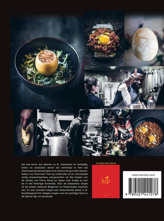 Kip was eerst, dus daarom nu Ei. Universeel en veelzijdig, lekker en voedzaam: eieren zijn onmisbaar in heel wat uiteenlopende bereidingen en je vindt ze terug in alle culturen. Auteur Luc Hoornaert trok op onderzoek uit en verzamelde zestig onweerstaanbare eiergerechten uit alle hoeken van de wereld, van China, Korea en Japan over Turkije en Iran tot in het Verenigd Koninkrijk. Voor de klassiekers klopte hij bij enkele bekende Belgische en Nederlandse topchefs aan, en ook cocktails kregen een welverdiende plaats in Ei. Foodfotograaf Kris Vlegels zorgde voor de krachtige foto's in dit tijdloze kijk- en kookboek.