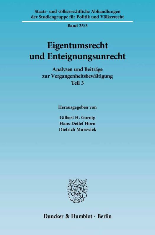 Rechtsstaatliche Vergangenheitsbewältigung verlangt mehr als die - notwendigen - Anstrengungen einer staatlichen Erinnerungskultur. Zur Wiedergutmachung des Vertreibungs- und Enteignungsunrechts nach dem Zweiten Weltkrieg muss auch etwas getan werden. Wo staatliches Unrecht wütete, kann und darf der Rechtsstaat die Opfer und ihre Angehörigen mit den Folgen nicht allein lassen. Hier zeigen sich in jüngerer Zeit manche positiven Ansätze eines stärker gewordenen Rechtsbewusstseins, aber auch weiterhin beharrliche Defizite. Worum es gehen muss, das ist, das Thema seiner politischen Manipulierung und Tabuisierung zu entreißen und den Diskurs über die Gerechtigkeit der Vergangenheitsbewältigung national wie grenzüberschreitend offen und im Einklang zu halten mit den europäischen Fundamenten von Recht, Freiheit und Eigentum. Auch das dritte Symposium der Studiengruppe für Politik und Völkerrecht (nach 2006 und 2008) will dazu Analysen und Beiträge leisten. Der vorliegende Teilband enthält die überarbeiteten und aktualisierten Beiträge der Tagung im Jahre 2010.
