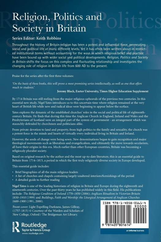 By 1714 Britain was still reeling from the major religious upheavals of the previous two centuries. In this essential new study Nigel Yates introduces us to this uncertain time where religion remained at the very heart of British life while new and radical ideas were beginning to appear below the surface. Based on original research by the author and the most up-to-date literature this is an essential guide to Britain in 1714 to 1815, a period in which the first truly religiously diverse society in Europe developed.