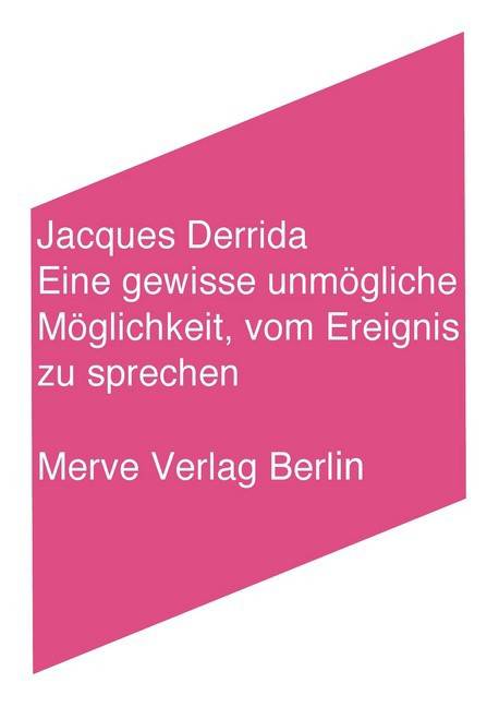 Vortrag im Rahmen eines Seminars mit dem Titel "Ist es möglich, vom Ereignis zu sprechen?" unter der Leitung von Gad Soussana und Alexis Nouss, Montréal 1997.Wenn es darum geht, die Beziehung des "Sprechens" zum "Ereignis" zu klären, gibt es mindestens zwei Möglichkeiten: Zum einen gibt es das Sprechen über ein Ereignis, das Benennen und Beschreiben dessen, was geschehen ist; zum anderen gibt es ein performatives Sprechen, das selbst Ereignis ist, wie zum Beispiel ein Geständnis oder eine Verurteilung. Ist das Sprechen über ein Ereignis in gewisser Weise unmöglich, weil es immer erst nachträglich stattfinden kann und weil es, auf allgemeine Begriffe angewiesen, die Singularität des Ereignisses notwendig verfehlt, so ist es im performativen Sprechakt die Unmöglichkeit des Ereignisses selbst, die sich ankündigt: An den Beispielen der Gabe, des Verzeihens und der Gastfreundschaft zeigt Jacques Derrida, dass das Ereignis stets nur um den Preis seiner Unmöglichkeit eintreten kann.