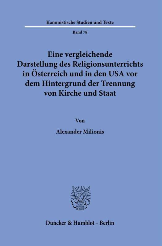 Die vorliegende Arbeit zeigt die unterschiedliche Trennung von Kirche und Staat in Osterreich und in den USA anhand des Religionsunterrichts auf. Die Ursachen fur die unterschiedlichen Rechtslagen werden dazu rechtshistorisch, rechtssoziologisch sowie rechtsdogmatisch betrachtet. Sie werden daruber hinaus einer vergleichenden Bewertung unterzogen und die jeweiligen Vor- und Nachteile (General- und Individualinteressen) gegeneinander abgewogen. Bekenntnisorientierter Religionsunterricht an offentlichen Schulen, unter zumindest formaler Aufsicht des Staates, ist nach Ansicht des Autors grundsatzlich gerade in einer religios-pluralistischen Gesellschaft sehr vorteilhaft. Dieser Unterricht sollte bekenntnisorientiert, aber auch religionsvergleichend sein, Staatskunde beinhalten und das Verhaltnis von Kirche und Staat sowie das Verhaltnis zu Andersglaubigen in Betracht ziehen.