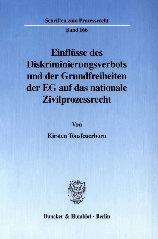 Kirsten Tönsfeuerborn stellt dar, dass es in den nationalen Zivilprozessordnungen Normen gibt, die Ausländer unmittelbar oder mittelbar gegenüber Inländern schlechter stellen. Im Falle der Eröffnung des Anwendungsbereichs des Vertrages, des Nichteingreifens besonderer Bestimmungen und fehlender Rechtfertigung, deren Voraussetzungen für das Zivilprozessrecht im Einzelnen untersucht werden, stehen diese Normen nicht mit Art. 12 Abs. 1 EG in Einklang. Dies gilt etwa für eine vom Kläger allein aufgrund seiner Ausländereigenschaft zu erbringende Prozesskostensicherheit bei einem Rechtsstreit, der aus einem grenzüberschreitenden Warengeschäft entsteht. Entsprechend der im Einzelnen dargestellten Rechtsprechung des EuGH werden weitere Normen insbesondere der deutschen ZPO daraufhin untersucht, ob sie im Anwendungsbereich des EG-Vertrages außer Acht zu lassen sind.