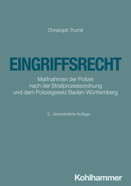 Im Polizeirecht bezeichnen Eingriffsrechte die Befugnisse von Polizeibeamten, im Rahmen von Gefahrenabwehr und Strafverfolgung in die Grundrechte von Bürgern einzugreifen. Polizeibeamte müssen komplexe Sachverhalte schnell aufnehmen und in den wesentlichen Fakten erfassen können sowie unter Berücksichtigung der geschützten Rechtsposition des Betroffenen nicht nur taktisch vernünftig, sondern auch rechtlich richtig entscheiden. Dieses Lehrbuch stellt die Grundlagen des Eingriffsrechts und alle gesetzlichen Befugnisse der baden-württembergischen Polizei zur Gefahrenabwehr und Strafverfolgung dar. Ausgehend von den jeweils betroffenen Grundrechten werden die Rechtsgrundlagen für alle offenen und verdeckten doppelfunktionalen Maßnahmen der Polizei anhand zahlreicher Beispiele kompakt und praxisgerecht erläutert. Berücksichtigt sind auch die Bestimmungen des Ordnungswidrigkeitengesetzes und des Allgemeinen Verwaltungsrechts.