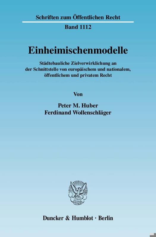 Einheimischenmodelle zur Deckung des Wohnbedarfs der ortsansässigen Bevölkerung stellen ein weithin praktiziertes und bewährtes Instrument des Städtebaurechts dar. Gleichwohl ist ihre Zulässigkeit im Grundsatz angefochten, wie das 2007 eingeleitete Vertragsverletzungsverfahren der Europäischen Kommission gegen die Bundesrepublik Deutschland zeigt, und ihre Ausgestaltung im Detail mit erheblichen Unsicherheiten belastet. Da hier Vorgaben des Verfassungsrechts, des öffentlichen Baurechts, des Vertrags-, Gleichstellungs- und Verbraucherschutzrechts sowie mehr und mehr auch des Unionsrechts aufeinander stoßen und manche dieser Rechtsgebiete eine besondere Dynamik aufweisen, sind die rechtlichen Rahmenbedingungen von Einheimischenmodellen komplex und stets im Fluss. In diesem Dickicht verschiedener Rechtsordnungen und -materien stecken Peter M. Huber und Ferdinand Wollenschläger mit der vorliegenden Untersuchung den Rechtsrahmen für die städtebauliche Einheimischenförderung ab. Dabei widmen sie sich nicht nur den verfassungs- und unionsrechtlichen Grundsatzfragen, sondern auch den für die Praxis bedeutsamen Detailfragen der vertraglichen Gestaltung. Übergreifendes Interesse kommt Einheimischenmodellen schließlich zu, weil sie sich aufgrund ihrer Ansiedelung an der Schnittstelle von Öffentlichem und Privatem Recht als instruktiver Beleg für den Charakter beider Teilrechtsordnungen als wechselseitige Auffangordnung erweisen und sie die Grenzen der im kooperativen Staat zunehmend an Bedeutung gewinnenden vertraglichen Absprachen zwischen der öffentlichen Hand und Privaten illustrieren.