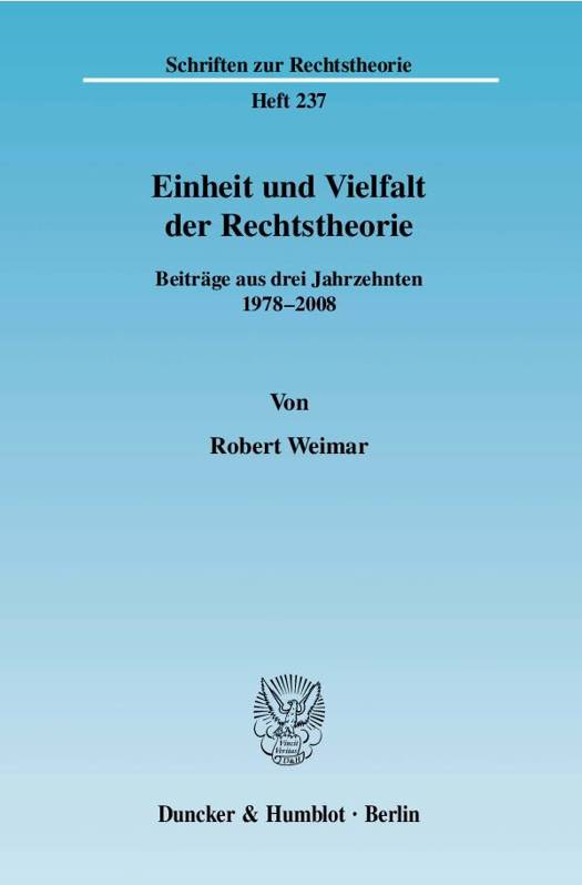Vor diesem Hintergrund lassen die Beiträge Robert Weimars grundlegende Fragestellungen der Rechtstheorie einander begegnen, deren Lösung wissenschaftlich vielfach noch offen ist und deren Entwicklung in Richtung weiterer Forschung verläuft. Viele der hier dargestellten rechtstheoretischen Kontroversen werden heute weltweit geführt. Dies gilt für die Theoriebildung in der Rechtswissenschaft, den Umgang der Rechtsakteure mit dem Gesetz, den Wandel rechtswissenschaftlicher Erkenntnisinteressen und die Konstruktion der Rechtswirklichkeit. Von besonderer Relevanz ist dies für Forschungen der modernen Neurowissenschaften und der Rechtspsychologie: Es wird deutlich, dass Rechtsanwender auf den motivierenden und bewertenden Einfluss von Gefühlen im Entscheidungsprozess angewiesen sind. Interdisziplinarität und "Schritte über Grenzen" bereichern das Terrain der herkömmlichen Rechtstheorie.