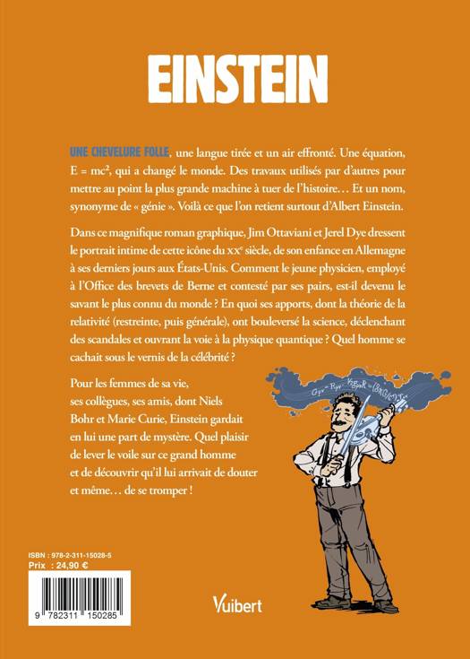Dans ce magnifique roman graphique, Jim Ottaviani et Jerel Dye dressent le portrait intime de cette icône du XXe siècle, de son enfance en Allemagne à ses derniers jours aux États-Unis. Comment le jeune physicien, employé à l’Office des brevets de Berne et contesté par ses pairs, est-il devenu le savant le plus connu du monde ? En quoi ses apports, dont la théorie de la relativité (restreinte, puis générale), ont bouleversé la science, déclenchant des scandales et ouvrant la voie à la physique quantique ? Quel homme se cachait sous le vernis de la célébrité ?