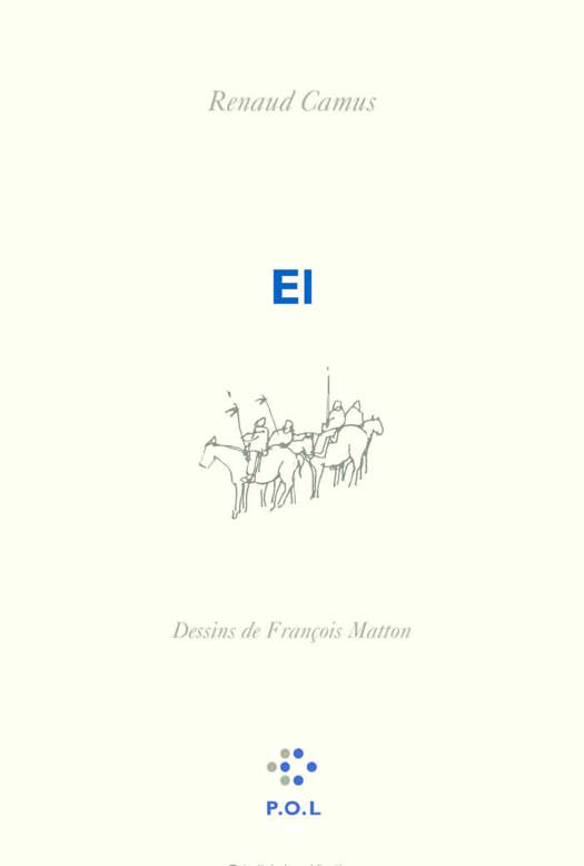 El est un texte écrit par Renaud Camus il y a 20 ans. Le manuscrit égaré puis retrouvé récemment a été écrit pour être accompagné de dessins, réalisés par François Matton. Dédié à El, mis pour Elisabeth, ce livre est un hommage rendu à une femme devenue personnage. Autour d'elle s'organisent les fragments d'une histoire ajourée, comme griffonés sur une nappe en papier. Chaque page comprend quelques lignes de texte placées sous une vignette ou une fenêtre. Chaque vignette n'est pas l'illustration du texte qu'on lit, mais l'écho retardé ou anticipateur de ce qui est dit, en décalage. Un peu comme le carré que dessine l'aruspice avec sa canne en désignant le ciel pour interpréter ce qui le traverse. "Ceux qui savent lire, le font tout haut, mais chacun propose son interprétation". El publié conjointement au Journal 1991, est aussi une manière d'autobiographie, une histoire donc. On pencherait pour un souvenir de vacances. La situation idéale serait celle d'une île grecque. Trois personnages isolés dans le désert des possibles, étrangers, dépossédés, un triangle réduit à un diminutif et deux initiales. Une femme et deux hommes on le comprend, des rencontres alléatoires à peine évoquées déjà évanouies au profit d'une nouvelle image faisant de la vie ce répertoire d'images et du lecteur ce regardeur.