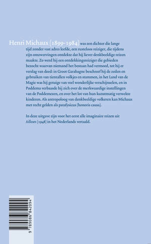Henri Michaux (1899-1984) was een dichter die lange tijd zonder vast adres leefde, een rusteloos reiziger, die tijdens zijn omzwervingen ontdekte dat hij liever denkbeeldige reizen maakte. Zo werd hij een ontdekkingsreiziger die gebieden bezocht waarvan niemand het bestaan had vermoed, tot hij er verslag van deed: in Groot Garabagne beschreef hij de zeden en gebruiken van tientallen volkjes en stammen, in het Land van de Magie was hij getuige van veel wonderlijke verschijnselen, en in Poddema verbaasde hij zich over de merkwaardige instellingen van de Poddemezen, en over het lot van hun kunstmatig verwekte kinderen. Als antropoloog van denkbeeldige volkeren kan Michaux met recht gelden als patafysicus (honoris causa).