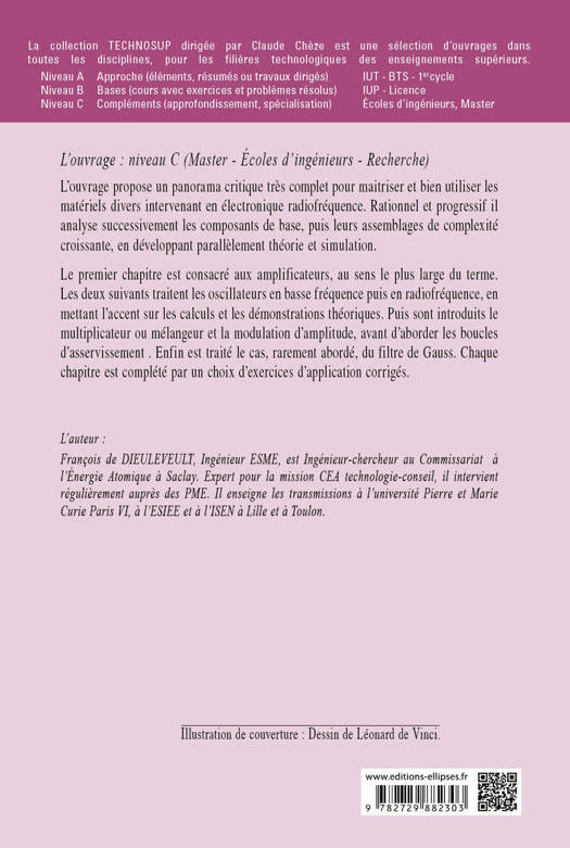 Les deux suivants traitent les oscillateurs en basse fréquence puis en radiofréquence, en mettant l’accent sur les calculs et les démonstrations théoriques. Puis sont introduits le multiplicateur ou mélangeur et la modulation d’amplitude, avant d’aborder les boucles d’asservissement. Enfin est traité le cas, rarement abordé, du filtre de Gauss. Chaque chapitre est complété par un choix d’exercices d’application corrigés.