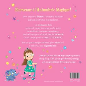 Bienvenue à l'Animalerie Magique ! Je te présente Eléfou, l'adorable éléphant qui fait des bulles multicolores. La princesse Iris aimerait emmener sa nouvelle amie au défilé des animaux magiques, mais elle ne peut s'empêcher de penser à tout ce qui pourrait mal tourner... Est-ce que la magie d'Elefou peut aider Iris à parler de ses inquiétudes ? Une histoire drôle et douce qui apprend aux plus petits qu'un problème partagé est un problème divisé par deux !