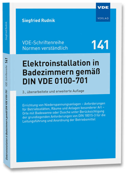 Moderne Badezimmer dienen heutzutage auch zur Entspannung. Die Verweildauer hat sich durch das Ambiente und Vorhandensein von Medieneinrichtungen erheblich verlängert. Damit die dafür notwendigen Einrichtungen in einem Badezimmer installiert werden dürfen, müssen besondere Maßnahmen berücksichtigt werden, die über die ursprünglichen Anforderungen an die Elektroinstallation in Badezimmern hinausgehen. Das Buch beschreibt die Anforderungen entsprechend den heute gültigen Normen, unter besonderer Berücksichtigung der DIN VDE 0100-701 "Errichten von Niederspannungsanlagen - Teil 7-701: Anforderungen für Betriebsstätten, Räume und Anlagen besonderer Art - Orte mit Badewanne oder Dusche", und nimmt Bezug auf die dafür notwendigen Maßnahmen. Dabei werden auch die Normen der Reihe DIN 18015 "Elektrische Anlagen in Wohngebäuden" betrachtet.
