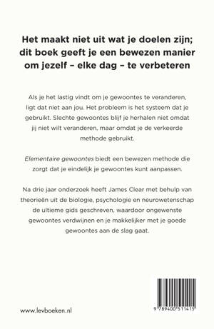Als je het lastig vindt om je gewoontes te veranderen, ligt dat niet aan jou. Het probleem is het systeem dat je gebruikt. Slechte gewoontes blijf je herhalen niet omdat jij niet wilt veranderen, maar omdat je de verkeerde methode gebruikt. Elementaire gewoontes (ook wel 'Atomic Habits') biedt een bewezen methode die zorgt dat je eindelijk je gewoontes kunt aanpassen.