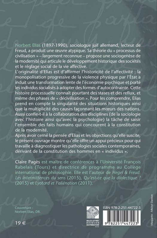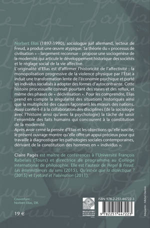 Norbert Elias (1897-1990), sociologue juif allemand, lecteur de Freud, a produit une oeuvre atypique. Sa theorie du processus de civilisation - largement reconnue - propose une sociogenese de la modernite qui articule le developpement historique des societes et le reglage social de la vie affective. L'originalite d'Elias est d'affirmer l'historicite de l'affectivite: la monopolisation progressive de la violence physique par l'Etat a induit une transformation lente de l'economie psychique et porte les individus socialises a adopter des formes d'autocontrainte. Cette histoire processuelle connait pourtant des stases et des reflux, et meme des phases de decivilisation. Pour les comprendre, Elias prend en compte la singularite des situations historiques ainsi que la multiplicite des causes faconnant les moeurs des nations. Aussi confie-t-il a la collaboration des disciplines (de la sociologie avec l'histoire ainsi qu'avec la psychologie) la tache de saisir l'ensemble des faits humains qui concourent a la constitution de la modernite. Apres avoir cerne la pensee d'Elias et les objections qu'elle suscite, le present ouvrage montre qu'elle offre un appui precieux pour qui travaille a diagnostiquer les pathologies sociales contemporaines, derivant de la constitution des hommes en individus .