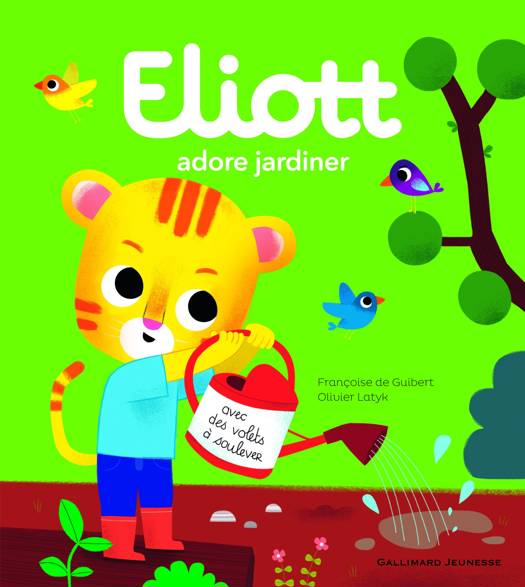Munis d'une brouette et d'un râteau, Eliott et son grand-père jardinent dans le potager : ils vont planter des graines de radis. Mais voilà que des oiseaux viennent les picorer !