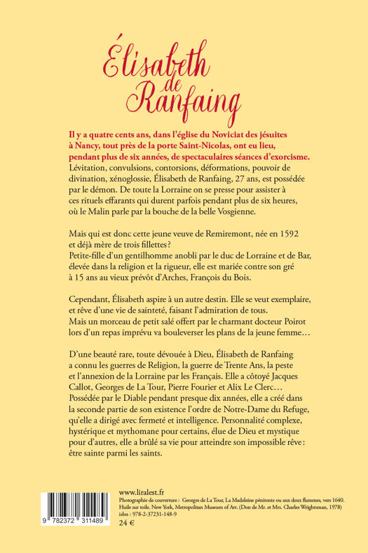 Élisabeth de Ranfaing est née en 1592. D'une beauté rare, toute dévouée à Dieu, elle a connu les guerres de Religion, la guerre de Trente Ans, la peste et l'annexion de la Lorraine par les Français. Elle a côtoyé Jacques Callot, Georges de La Tour, Pierre Fourier et Alix Le Clerc...