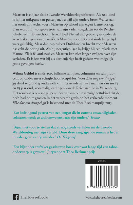 Maarten is elf jaar als de Tweede Wereldoorlog uitbreekt. Als NSB-kind is hij het mikpunt van pesterijen. Terwijl zijn oudere broer Walter aan het oostfront vecht, voert Maarten op school zijn eigen kleine oorlog. Dan wordt hij, tot grote trots van zijn vader, toegelaten tot de Reichsschule, een 'Hitlerschool'. Terwijl heel Nederland gebukt gaat onder de verschrikkingen van de nazi's, is Maarten voor het eerst sinds lange tijd weer gelukkig. Maar dan capituleert Duitsland en breekt voor Maarten pas echt de oorlog uit. Als hij negentien jaar is, krijgt hij een relatie met Hanne. Zij is fel antinazi en Maarten kan niet langer zwijgen over zijn verleden. Er is iets wat hij als dertienjarige heeft gedaan wat mogelijk grote gevolgen heeft...
