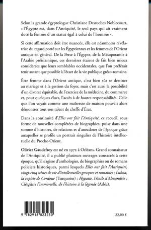 Si cette affirmation doit être nuancée, elle est néanmoins révélatrice du regard porté sur les Égyptiennes et les femmes de l’Orient antique en général. De la Perse à l’Égypte, de la Mésopotamie à l’Arabie préislamique, ces dernières étaient de fait bien mieux considérées que leurs semblables occidentales, que l’on préférait tenir autant que possible à l’écart de la vie publique gréco-romaine.