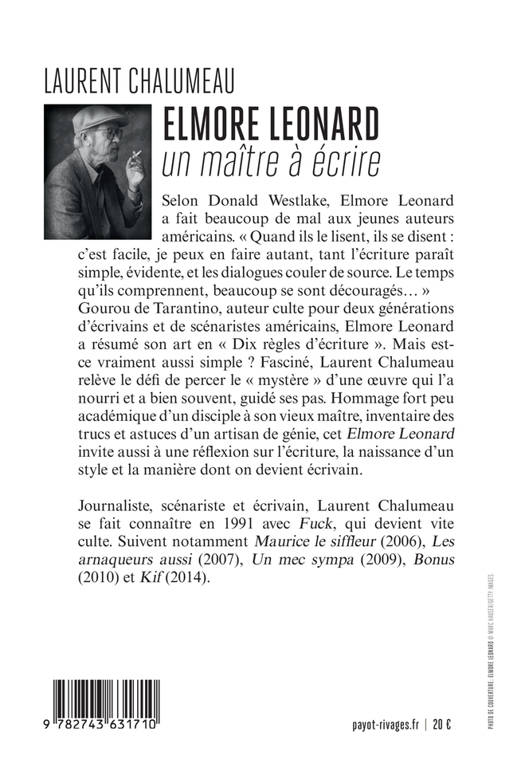 Fasciné par l'oeuvre d'Elmore Leonard, qui a profondément influencé deux générations d'écrivains et de scénaristes américains, Laurent Chalumeau a voulu comprendre pourquoi cet auteur revêt une telle importance pour autant de monde. La réponse est à chercher dans sa manière d'écrire unique, qui s'est diffusée dans toute la culture populaire, notamment à travers le cinéma, la télévision ou la bande-dessinée, et qui a fait de lui le pape du « pulp » et l'influence déterminante de vedettes comme Tarantino. À partir de sa propre expérience d'écrivain, de sa connaissance intime de l'oeuvre et de ses entretiens avec l'auteur, Laurent Chalumeau réussit à dévoiler l'essence de la « magie Leonard », pour le plus grand bénéfice de tous ceux que l'écriture intéresse et qui sont fascinés par ses mystère
