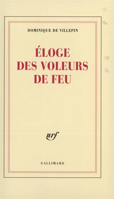 "Cet Éloge s'imposa il y a bien longtemps. J'avais seize ans, et toi mon frère dix-huit, quand nous marchions dans les rues de New York à l'heure où le soleil couchant éclaboussait les tours. Tu scrutais le paysage, les visages blafards à six heures, la fumée qui jaillissait partout, luttant contre les ombres. Je compris que, hors de ce quotidien aveugle et sourd, il te fallait des mots, comme des ballons de couleur, pour toucher au coeur. Des mots de ces fous, qui s'en sont allés quérir au fond du désespoir la lueur qui ouvre le chemin, la passion qui fait sauter les verrous de la langue. Des mois durant ils agrandirent la vie. Toi parti, il me restait ce devoir de l'aînesse : dire après la catastrophe, apprivoiser la parole pour les enfants de la peine. Oui, la poésie, pour vivre encore. Contre le naufrage de la mémoire, contre les forces vaines, choisissons le combat qui grandit. Et partageons les mots de Rimbaud, d'Artaud ou de Duprey, de tous ces voleurs de feu qui allumèrent les brasiers de l'âme, pour ne bâtir d'autre empire qu'à l'intérieur de soi. Tourne et craque la terre dans l'obscur mystère où se débattent voix et masques, victimes et bourreaux ! Derrière l'urgence de chaque jour, je rêve d'une parole qui défriche, d'une parole qui sauve. Alors cet ouvrage, pour refuser la fatalité et le vertige, pour exorciser la peur qui crie au fond de nous !" Dominique de Villepin.
