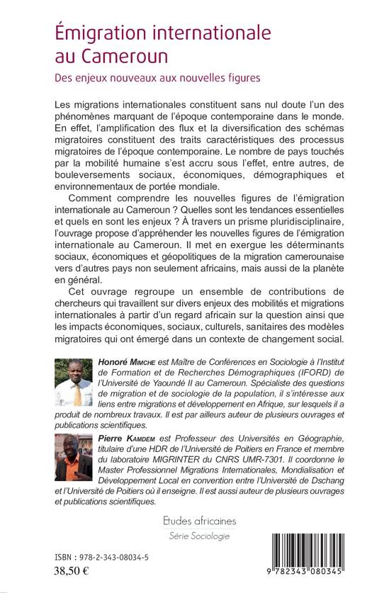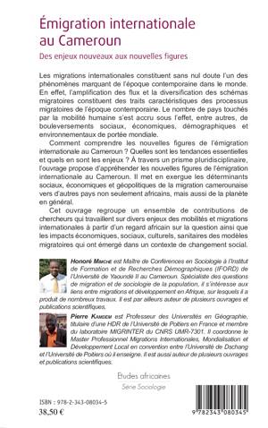 Comment comprendre les nouvelles figures de l'émigration internationale au Cameroun ? Quelles sont les tendances essentielles et quels en sont les enjeux ? A travers un prisme pluridisciplinaire, l'ouvrage propose d'appréhender les nouvelles figures de l'émigration internationale au Cameroun. Il met en exergue les déterminants sociaux, économiques et géopolitiques de la migration camerounaise vers d'autres pays non seulement africains, mais aussi de la planète en général.