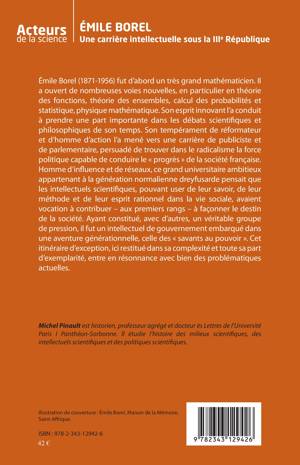 Emile Borel (1871-1956) fut un très grand mathématicien. Il a ouvert de nombreuses voies nouvelles en théorie des fonctions, théorie des ensembles, calcul des probabilités et statistique, physique mathématique. Son esprit innovant l'a conduit à prendre une part importante dans les débats scientifiques et philosophiques de son temps. Réformateur et homme d'action, il a été publiciste et parlementaire, persuadé que le radicalisme politique conduirait la société française au « progrès ». Cet universitaire ambitieux pensait que les savants avaient vocation à façonner la société.