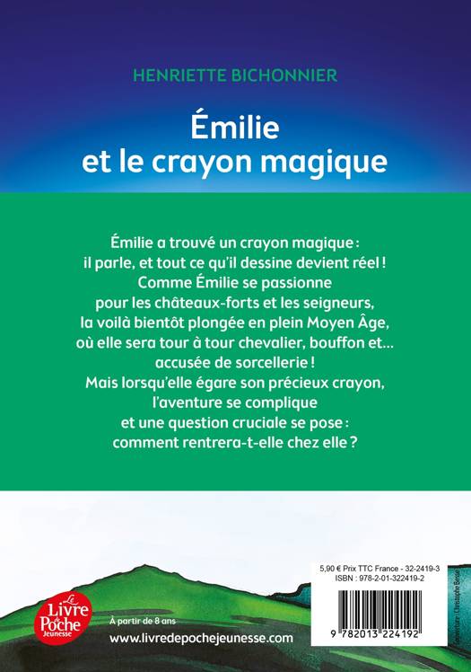 Émilie a trouvé un crayon magique : il parle, et tout ce qu'il dessine devient réel ! Comme Emilie se passionne pour les châteaux-forts et les seigneurs, la voilà bientôt plongée en plein Moyen-Âge, où elle sera tour à tour chevalier, bouffon et... accusée de sorcellerie ! Mais lorsqu'elle égare son précieux crayon, l'aventure se complique et une question cruciale se pose : comment rentrera-t-elle chez elle ?