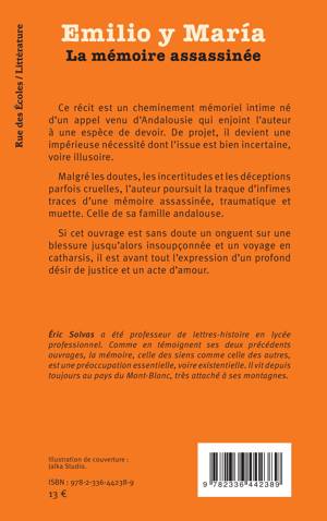 Ce récit est un cheminement mémoriel intime né d'un appel venu d'Andalousie qui enjoint l'auteur à une espèce de devoir. De projet, il devient une impérieuse nécessité dont l'issue est bien incertaine, voire illusoire. Malgré les doutes, les incertitudes et les déceptions parfois cruelles, l'auteur poursuit la traque d'infimes traces d'une mémoire assassinée, traumatique et muette. Celle de sa famille andalouse. Si cet ouvrage est sans doute un onguent sur une blessure jusqu'alors insoupçonnée et un voyage en catharsis, il est avant tout l'expression d'un profond désir de justice et un acte d'amour.