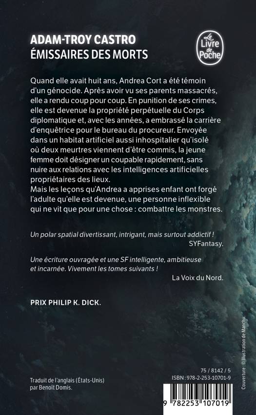 Quand elle avait huit ans, Andrea Cort a été témoin d’un génocide. Après avoir vu ses parents massacrés, elle a rendu coup pour coup. En punition de ses crimes, elle est devenue la propriété perpétuelle du Corps diplomatique et, avec les années, a embrassé la carrière d’enquêtrice pour le bureau du procureur. Envoyée dans un habitat artificiel aussi inhospitalier qu’isolé où deux meurtres viennent d’être commis, la jeune femme doit désigner un coupable rapidement, sans créer d’incident diplomatique avec les intelligences artificielles propriétaires des lieux. Mais les leçons qu’Andrea a apprises enfant ont forgé l’adulte qu’elle est devenue : une femme inflexible qui ne vit que pour une chose, combattre les monstres.