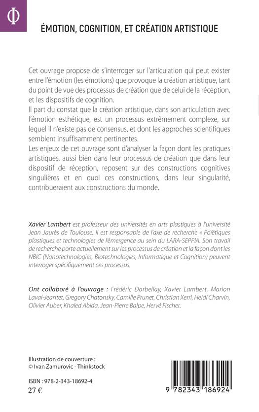 Cet ouvrage propose de s'interroger sur l'articulation qui peut exister entre l'émotion que provoque la création artistique, tant du point de vue des processus de création que de celui de la réception, et les dispositifs de cognition. Il part du constat que la création artistique, dans son articulation avec l'émotion esthétique, est un processus complexe, sur lequel il n'existe pas de consensus, et dont les approches scientifiques semblent insuffisamment pertinentes. L'enjeu est d'analyser la façon dont les pratiques artistiques, aussi bien dans leur processus de création que dans leur dispositif de réception, reposent sur des constructions cognitives singulières et en quoi ces constructions, dans leur singularité, contribuent aux constructions du monde.
