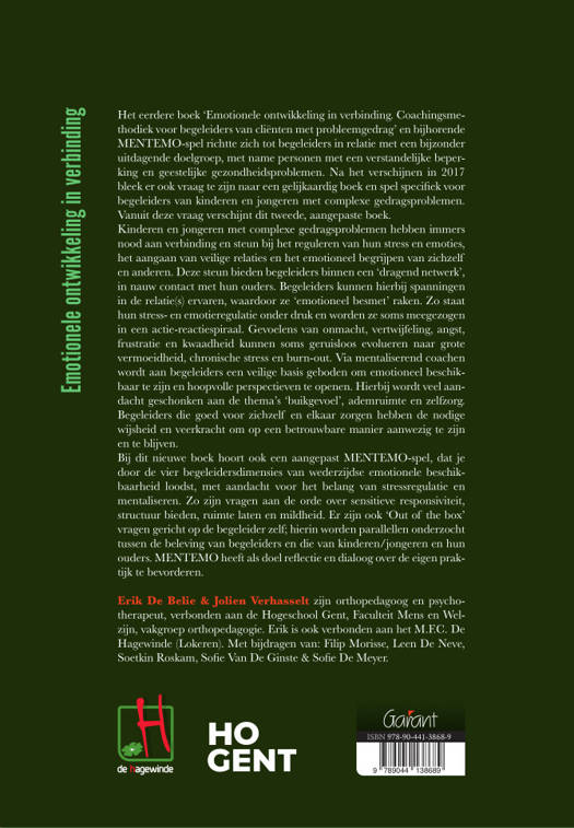 Het eerdere boek ‘Emotionele ontwikkeling in verbinding. Coachingsmethodiek voor begeleiders van cliënten met probleemgedrag’ en bijhorende MENTEMO-spel richtte zich tot begeleiders in relatie met een bijzonder uitdagende doelgroep, met name personen met een verstandelijke beperking en geestelijke gezondheidsproblemen. Na het verschijnen in 2017 bleek er ook vraag te zijn naar een gelijkaardig boek en spel specifiek voor begeleiders van kinderen en jongeren met complexe gedragsproblemen. Vanuit deze vraag verschijnt dit tweede, aangepaste boek.<br/>