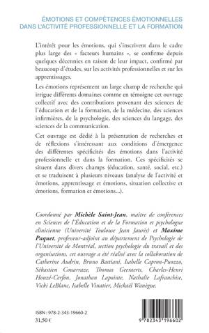 Cet ouvrage est dédié à la présentation de recherches et de réflexions s'intéressant aux conditions d'émergence des différentes spécificités des émotions dans l'activité professionnelle et dans la formation. Ces spécificités se situent dans divers champs (éducation, santé, social, etc.) et se traduisent à plusieurs niveaux (analyse de l'activité et émotions, situation collective et émotions, formation et émotions).