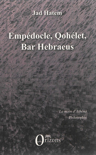 Empédocle passe, dans la philosophie arabe, pour une sorte de néo-platonicien que l'on dote d'une pensée ne rappelant que d'assez loin celle qui fut la sienne. Le théologien syriaque orthodoxe Bar Hebraeus allègue que Qohélet (l'Ecclésiaste) fut son disciple. De cette donnée, le présent ouvrage dégage le sens et en examine les prolongements exégétiques et philosophiques.