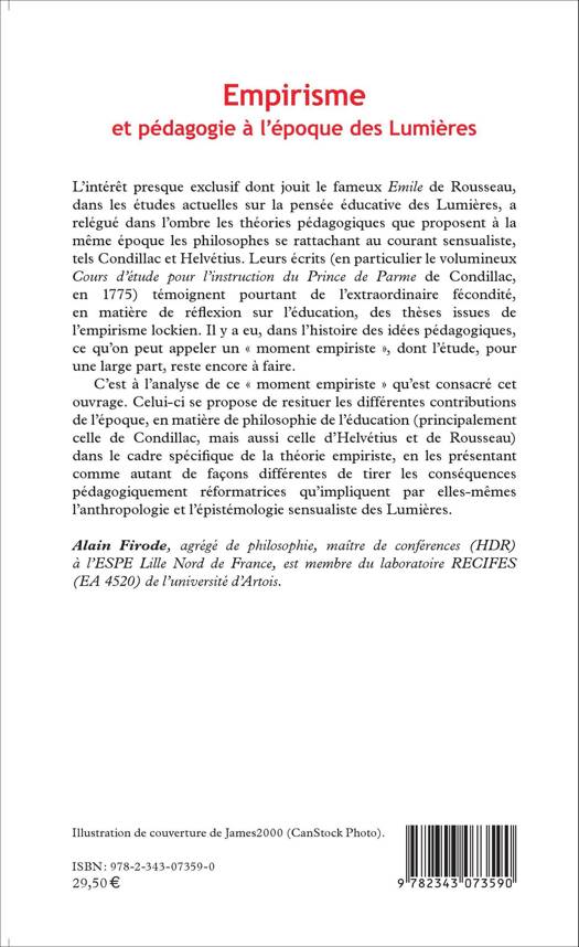 Il y a eu dans l'histoire des idées pédagogiques ce que l'on peut appeler un "moment empiriste" dont l'étude, pour une large part, reste encore à faire. C'est à l'analyse de ce moment empiriste qu'est consacré cet ouvrage. Il se propose de restituer les différentes contributions de l'époque en matière de philosophie de l'éducation (Condillac, Helvetius, Rousseau) et de tirer les conséquences pédagogiquement réformatives qu'impliquent par elles-mêmes l'anthropologie et l'épistémologie sensualiste des Lumières.