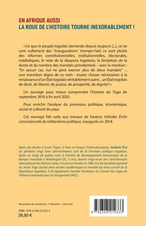 « Ce que le peuple togolais demande, ce sont des réformes constitutionnelles, institutionnelles, électorales, médiatiques, le vote de la diaspora togolaise, la limitation de la durée et du nombre des mandats présidentiels, une transition digne de ce nom : toutes choses nécessaires à la renaissance d’un État togolais véritablement autre... un État togolais de droit, de liberté, de justice, de prospérité, de dignité ! » Un ouvrage pour mieux comprendre l’histoire du Togo de septembre 2019 à fin avril 2020 et enrichir l’analyse du processus politique, économique, social et culturel du pays.