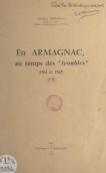 On a donné, longtemps, le nom de « Temps des troubles » à la période de guerres civiles qui marque, en France, la deuxième moitié du seizième siècle. Au début de 1561, dans l’Agenais, le Condomois, l’Armagnac, des bandes armées s’attaquent aux églises, brisent les images, donnent la chasse aux prêtres et aux seigneurs, considérés comme des piliers particulièrement solides des partis catholique et conservateur. Ne trouvant pas, dans les registres, tout ce que les historiens gascons auraient intérêt à connaître pour cette période, Charles Samaran a fondé ses recherches, notamment, sur les lettres de rémission trouvées dans les registres de la Chancellerie de France...
