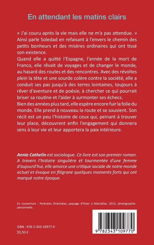 « J'ai couru après la vie mais elle ne m'a pas attendue. » Ainsi parle Soledad en refaisant à l'envers le chemin des petits bonheurs et des misères ordinaires qui ont tissé son existence. Quand elle a quitté l'Espagne, l'année de la mort de Franco, elle rêvait de voyages et de changer le monde, au hasard des routes et des rencontres. Bien des années plus tard, elle espère encore fuir la folie du monde. Son récit est un peu l'histoire de ceux qui, peinant à trouver leur place, découvrent enfin l'engagement qui donnera sens à leur vie et leur apportera la paix intérieure.