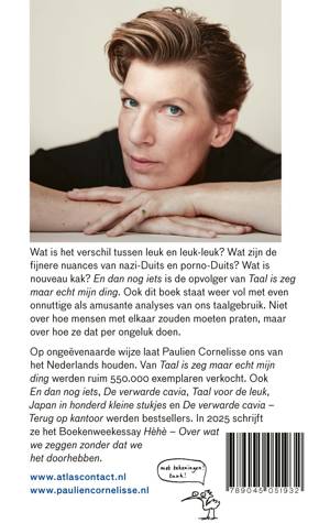 Wat is het verschil tussen leuk en leuk-leuk? Wat zijn de fijnere nuances van nazi-Duits en porno-Duits? Wat is nouveau kak? En dan nog iets is de opvolger van Taal is zeg maar echt mijn ding. Ook dit boek staat weer vol met even onnuttige als amusante analyses van ons taalgebruik. Niet over hoe mensen met elkaar zouden moeten praten, maar over hoe ze dat per ongeluk doen.