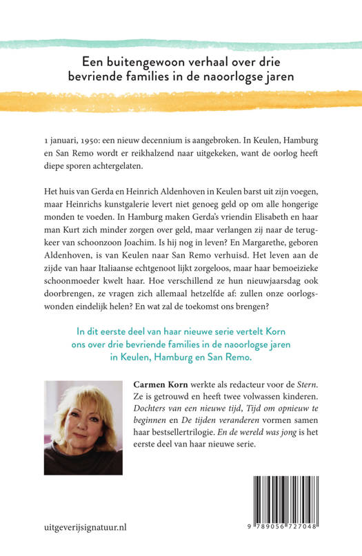 1 januari, 1950: een nieuw decennium is aangebroken. Er wordt reikhalzend naar uitgekeken, want de oorlog heeft diepe wonden achtergelaten. Het huis van Gerda en Heinrich Aldenhoven in Keulen barst uit zijn voegen, maar Heinrichs kunstgalerie levert niet genoeg geld op om alle hongerige monden te voeden. In Hamburg verlangen Gerda’s vriendin Elisabeth en haar man Kurt naar de terugkeer van schoonzoon Joachim. Is hij nog in leven? En Margarethe, geboren Aldenhoven, is van Keulen naar San Remo verhuisd. Het leven aan de zijde van haar Italiaanse echtgenoot lijkt zorgeloos, maar haar bemoeizieke schoonmoeder kwelt haar. Hoe verschillend ze hun nieuwjaarsdag ook doorbrengen, ze vragen zich allemaal hetzelfde af: zullen onze oorlogswonden eindelijk helen? En wat zal de toekomst ons brengen?