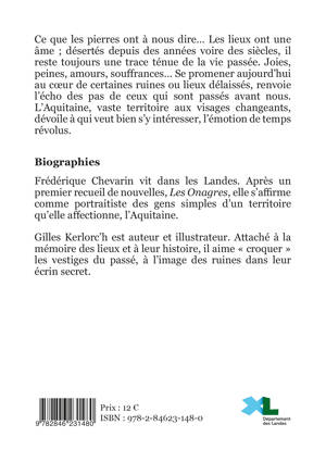 Ce que les pierres ont à nous dire… Les lieux ont une âme ; désertés depuis des années voire des siècles, il reste toujours une trace ténue de la vie passée. Joies, peines, amours, souffrances… Se promener aujourd’hui au coeur de certaines ruines ou lieux délaissés, renvoie l’écho des pas de ceux qui sont passés avant nous. L’Aquitaine, vaste territoire aux visages changeants, dévoile à qui veut bien s’y intéresser, l’émotion de temps révolus.