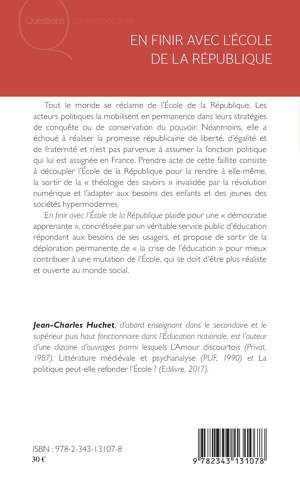 Tout le monde se réclame de l'École de la République bien qu'elle ne parvienne pas à réaliser les promesses républicaines de liberté, d'égalité et de fraternité. Cet ouvrage plaide pour une "démocratie apprenante" soutenue par un service public d'enseignement répondant aux besoins des usagers afin de s'extraire de la déploration permanente de la "crise de l'éducation" et contribuer à la mutation de l'École, plus réaliste et ouverte au monde social.