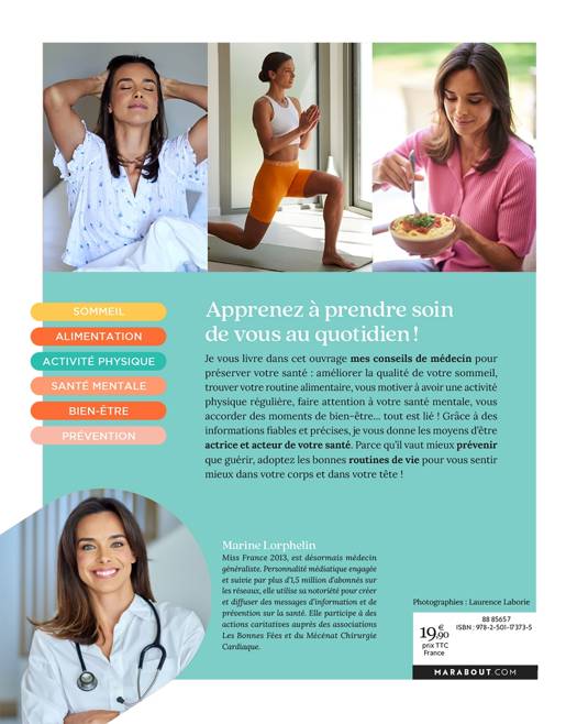 Apprenez à prendre soin de vous au quotidien !Je vous livre dans cet ouvrage mes conseils de médecin pour préserver votre santé : améliorer la qualité de votre sommeil, trouver votre routine alimentaire, vous motiver à avoir une activité physique régulière, faire attention à votre santé mentale, vous accorder des moments de bien-être... tout est lié ! Grâce à des informations fiables et précises, je vous donne les moyens d’être actrice et acteur de votre santé. Parce qu’il vaut mieux prévenir que guérir, adoptez les bonnes routines de vie pour vous sentir mieux dans votre corps et dans votre tête !
