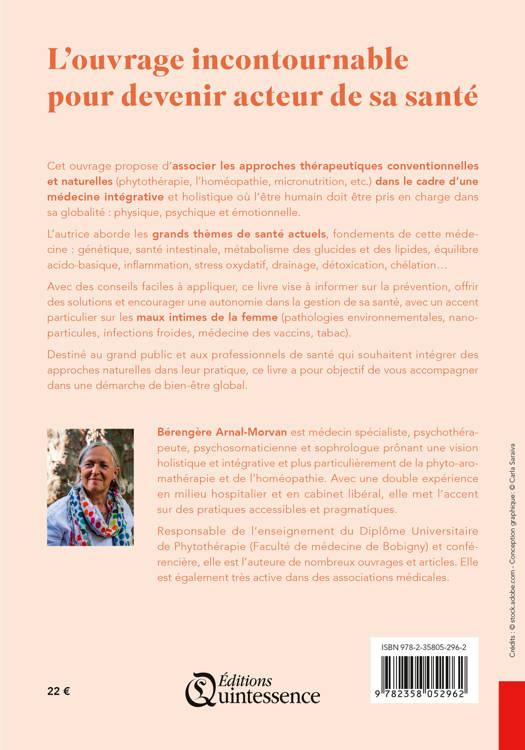 Cet ouvrage propose d’associer les approches thérapeutiques conventionnelles et naturelles (phytothérapie, l’homéopathie, micronutrition, etc.) dans le cadre d’une médecine intégrative et holistique où l’être humain doit être pris en charge dans sa globalité : physique, psychique et émotionnelle. L’autrice aborde les grands thèmes de santé actuels, fondements de cette médecine : génétique, santé intestinale, métabolisme des glucides et des lipides, équilibre acido-basique, inflammation, stress oxydatif, drainage, détoxication, chélation… Avec des conseils faciles à appliquer, ce livre vise à informer sur la prévention, offrir des solutions et encourager une autonomie dans la gestion de sa santé, avec un accent particulier sur les maux intimes de la femme (pathologies environnementales, nanoparticules ou particules ultrafines, infections froides, médecine des vaccins, tabac). Destiné au grand public et aux professionnels de santé qui souhaitent intégrer des approches naturelles dans leur pratique, ce livre a pour objectif de vous accompagner dans une démarche de bien-être global.