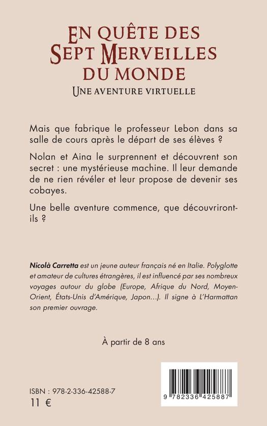 Mais que fabrique le professeur Lebon dans sa salle de cours après le départ de ses élèves ? Nolan et Aina le surprennent et découvrent son secret: une mystérieuse machine. Il leur demande de ne rien révéler et leur propose de devenir ses cobayes. Une belle aventure commence, que découvriront-ils ? À partir de 8 ans