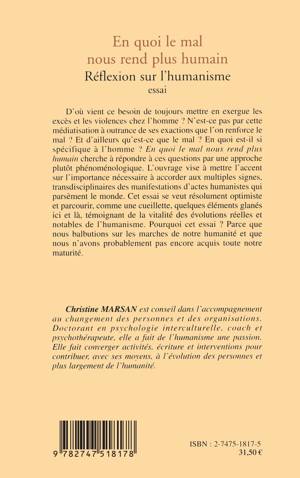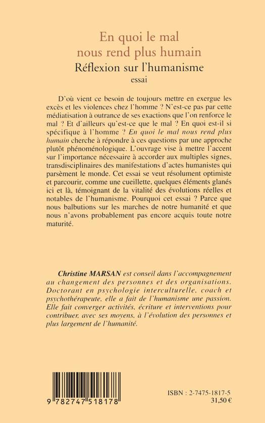 Qu'est-ce que le mal ? En quoi est-il si spécifique à l'homme ? Par une approche plutôt phénoménologique cet ouvrage vise à mettre l'accent sur l'importance nécessaire à accorder aux multiples signes des manifestations d'actes humanistes qui parsèment le monde. Cet essai se veut résolument optimiste en témoignant de la vitalité des évolutions réelles et notables de l'humanisme.