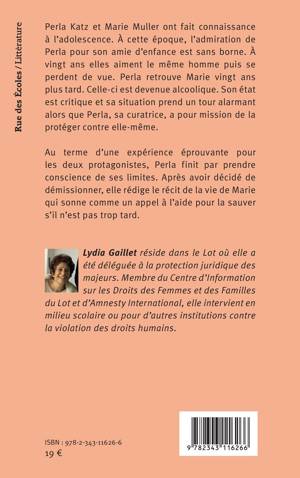 Perla Katz et Marie Muller ont fait connaissance à l’adolescence. À cette époque, l’admiration de Perla pour son amie d’enfance est sans borne. À vingt ans elles aiment le même homme puis se perdent de vue avant de se retrouver vingt ans plus tard. Marie est devenue alcoolique. Son état est critique et Perla, sa curatrice, a pour mission de la protéger contre elle-même. Au terme d’une expérience éprouvante pour les deux protagonistes, Perla finit par prendre conscience de ses limites et décide de rédiger le récit de la vie de Marie qui sonne comme un appel à l’aide.
