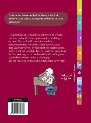Prachtig historisch kinderboek. Het is het jaar 1619. Judith woont boven de weverij van haar vader. Ze is dol op de mooie afbeeldingen op de stoffen. De patronen daarvoor worden gemaakt door echte kunstschilders en Judith droomt ervan later ook tekenares te worden. Maar dan verkoopt haar vader de weverij en hij begint een bierbrouwerij. Judith vindt het vreselijk. Tot overmaat van ramp haalt hij haar ook nog van school om de boekhouding van zijn bedrijf te doen. Judith is wanhopig. Zal het haar ooit nog lukken om tekenares te worden?